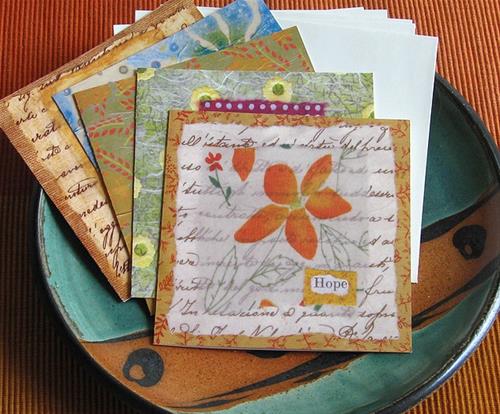 5 Note Cards of Painted Collages by Christine Peloquin with 5 Envelopes