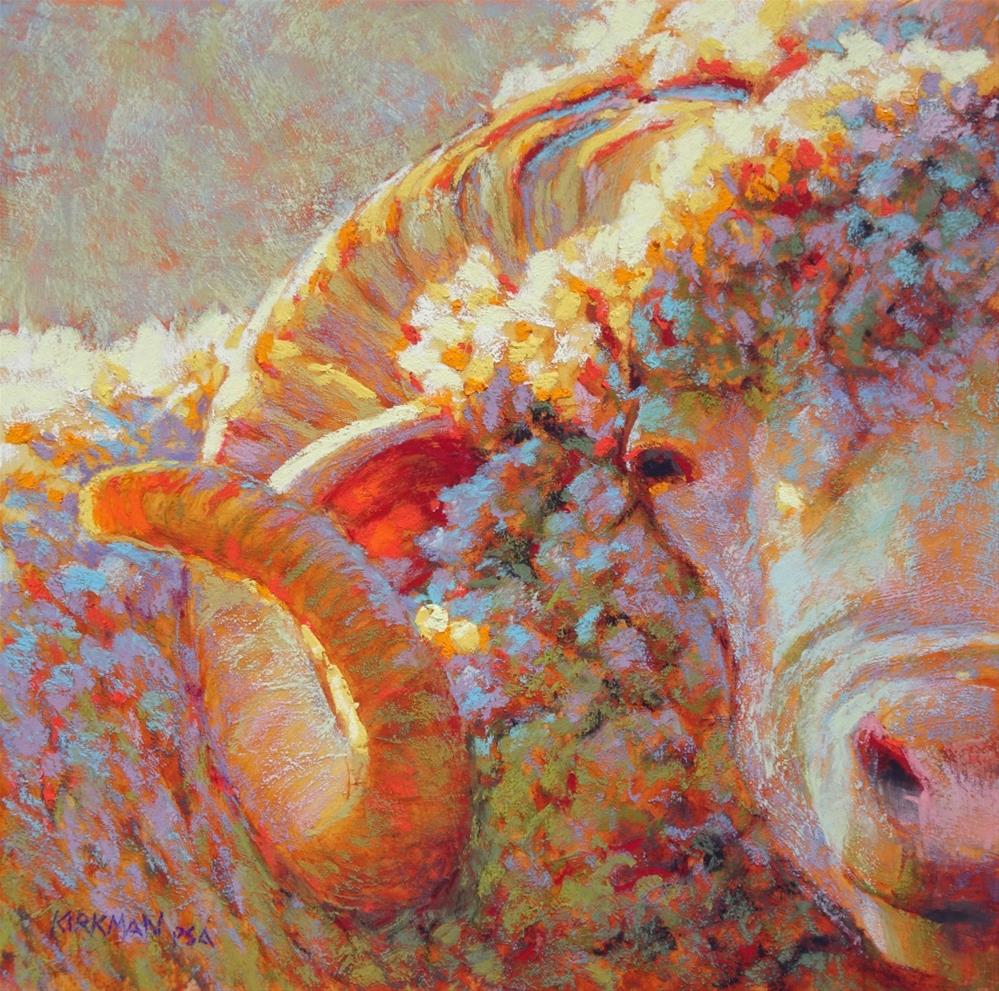 This was another underpainting that I had done a while back. As I pasteled this sheep, the colors I was using (and the fluffiness) reminded me of cotton candy, but sunlit!