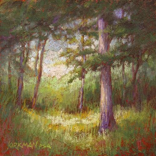 I was in a landscape mood today so I finished (fixed, re-did, did-over) this little glade that I started as a February workshop demo.
