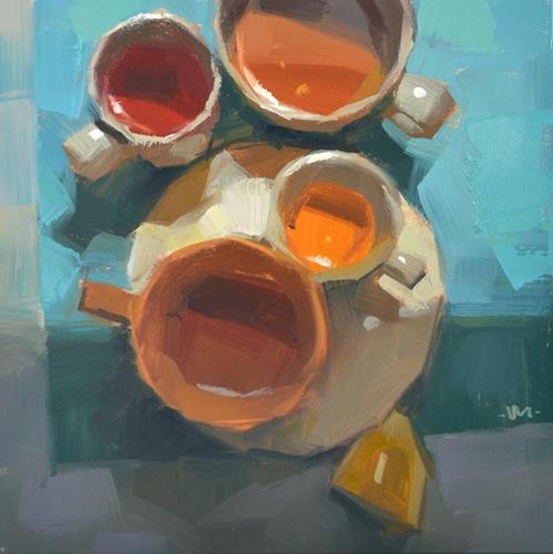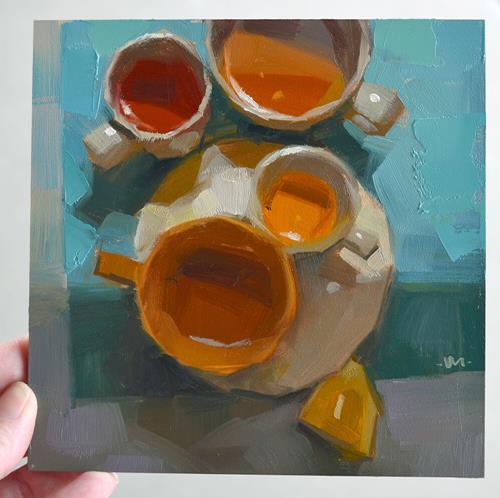 When I was taking the photos for this tea series, I made one kind of tea and poured it in a bunch of cups. I love how the colors of the tea vary so much depending on the cup and the light hitting it (or not), and the reflections, etc. It is very fun and satisfying to paint.