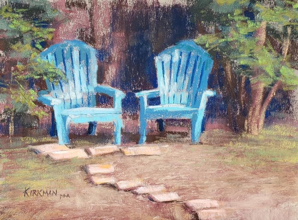 This pastel painting is on auction unframed. Pastel needs to be framed under glass for proper protection and display. All auctions of unframed pastels come with a "Pastel Care and Framing Tips" for assistance with your framing decisions.