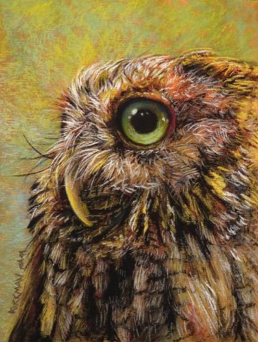 Here's the star of Saturday's Paint-Along - the Screech Owl! This one's a little different... Instead of my usual pastel primer underpainting, I used some UArt paper that had some pastel washed in with alcohol, something I had left over from someone else's workshop months ago. I figured I'd put it to use! So instead of building an acrylic-based underpainting, I basically started with a value drawing of the owl using a black Rembrandt pastel.