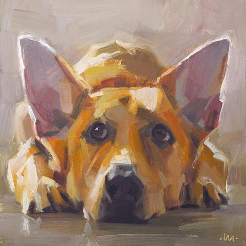 Here's one with a similar theme as my last painting. You might think I like sad dogs, but really these last 2 images were just a perfect opportunity for me to dive into all those little bits of fun color, especially in these ears!