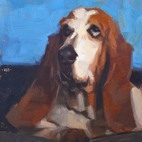 One of the things I've been doing lately that is really helping me, especially with these animal paintings: sneaking up on darks. Basically I am squinting at the dark areas so they kind of run together, and then roughing those areas in with a paint color that is not my darkest color, but also doesn't include any white. I usually do this with a mix of ultramarine blue, cadmium red, and cadmium yellow - which I can lean towards whatever color is there (for example, this guy had more red in the darks). I get the entire animal filled in with other colors before I add the darkest darks wherever they need to go.