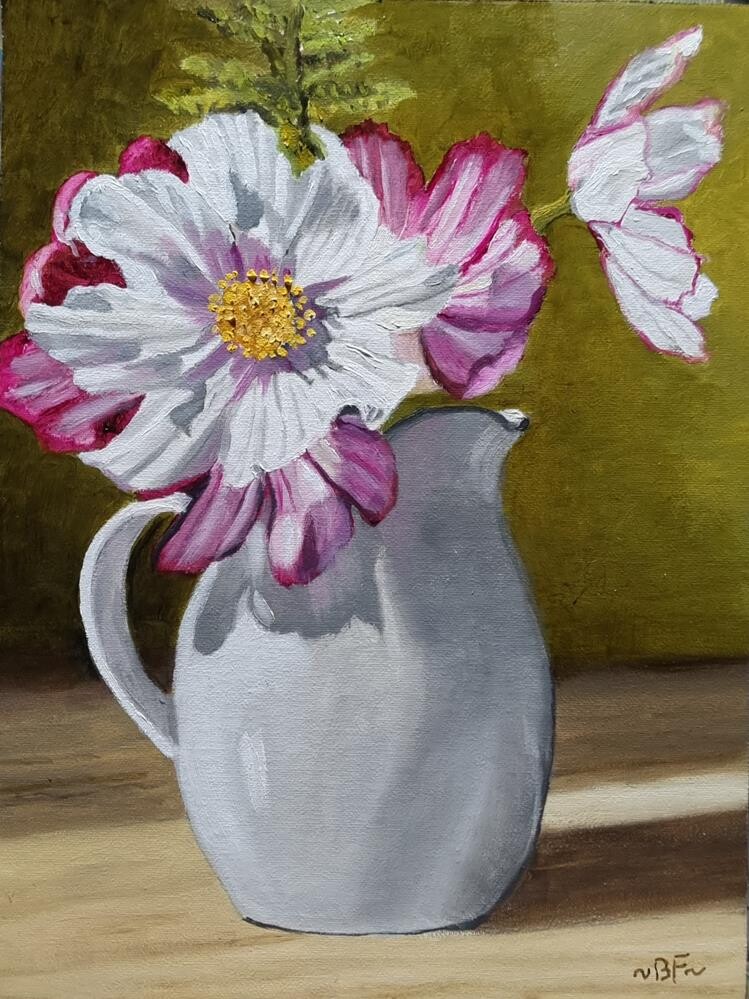 "Cosmos in a White Pitcher" by Betty Felenchak