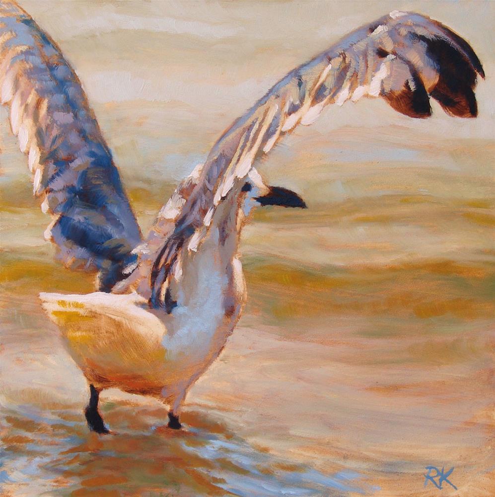 Since the recent gull painting got a good share of attention, I thought I'd take the opportunity to re-post this one from my original mini-series of gulls in 2012. This one and a couple others are all that's left, and they get tricky to sell at art fairs because they're so different from the rest of my current work (and they're not pastel...)