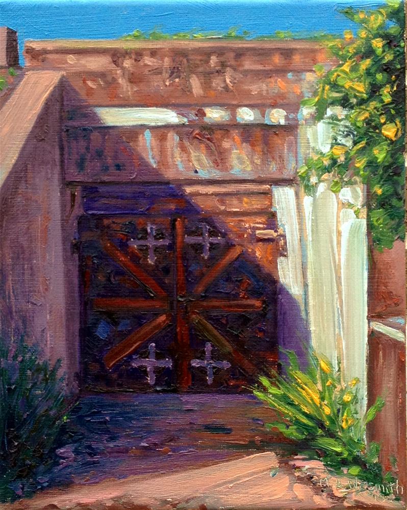 I've been painting a lot of Bolivar lately, especially the light house and bolivar flats. I realized a few weeks ago on my way back from Galveston with my son that I've never painted Fort Travis so I spent a few hours today on this little 10" x 8" oil painting of some of the rustic doors at the fort.Old Fort Travis sits at the western end of the Bolivar Peninsula just before the ferry landing to Galveston. The current fort was constructed in 1898. In 1961 several area residents took shelter at the fort to ride out Hurricane Carla.Currently the fort is a park operated through the Galveston County Beach and Parks Department. Several of the concrete bunkers still remain, and it's a great place to watch the ships or to fish.