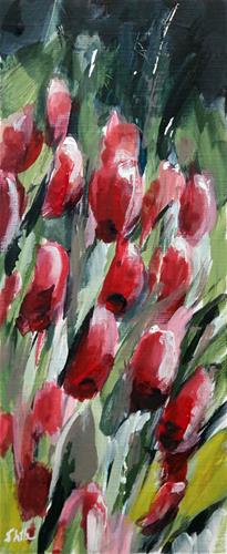 I don't have time for big jumps and big paintings, so now I have painted some small formats and fast spring works. It starts with the tulips in the field.