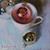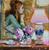 I had another debate with my family about the name of this painting. We finally settled on "Cup of Gold". The teacup and saucer are outlined with gold, the chocolate spheres have shiny golden wrappers, and the present in the background is pale gold with a bright golden ribbon. So there was no other logical name for this piece than "Cup of Gold".