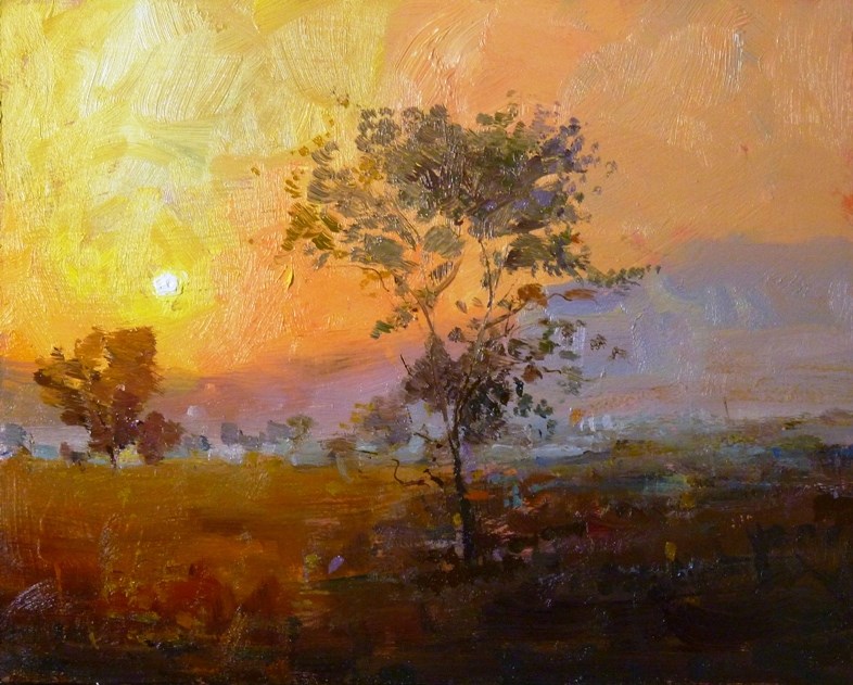 This is the first one of my paintings from my trip to Nigeria, Dawn around Abuja at 6.15am-the light was beautiful! some sort of harmattan was still eerie in the air! It was a sublime feeling!