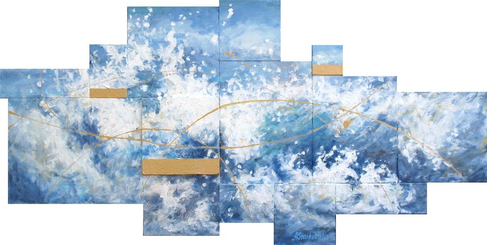 Media: Acrylic and gold ink on 14 canvases of different size and depth.
