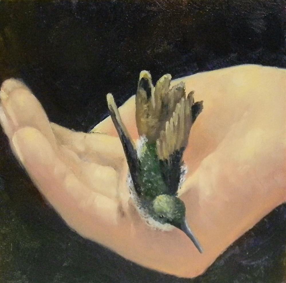 Picture credit Petra Glorie; she made this picture during a bird banding session. The painting can be framed, or hung as is (it has a small hole in the back for hanging).