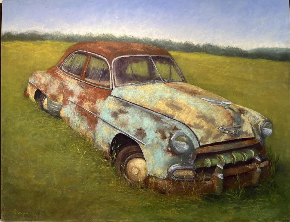This is the 5th in a series of rusty vehicles in Arkansas. This one sat at the bottom of Petit Jean Mountain. Creating the texture of rust is a lot of fun and a little abstract. This painting is framed. This is the 5th in a series of rusty vehicles in Arkansas. This one sat at the bottom of Petit Jean Mountain. Creating the texture of rust is a lot of fun and a little abstract. This painting is framed. |