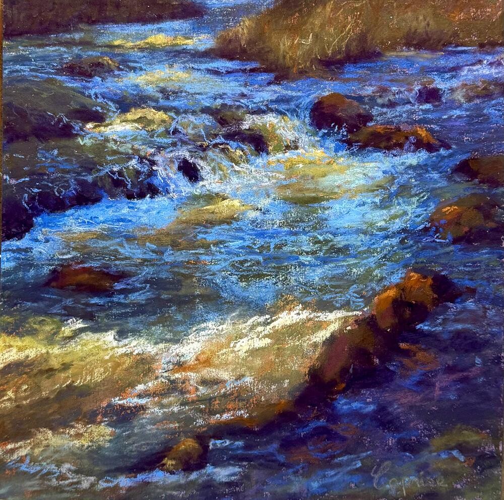 This is a creek running through the Smoky Mountains. I had originally included the forest in the background where the sun was shining through lighting up the back. When I realized that the water was really the star of the show, I cut off the forest. I believe removing the forest allowed for the mark making and the movement of the water to stand out. This is a creek running through the Smoky Mountains. I had originally included the forest in the background where the sun was shining through lighting up the back. When I realized that the water was really the star of the show, I cut off the forest. I believe removing the forest allowed for the mark making and the movement of the water to stand out. |