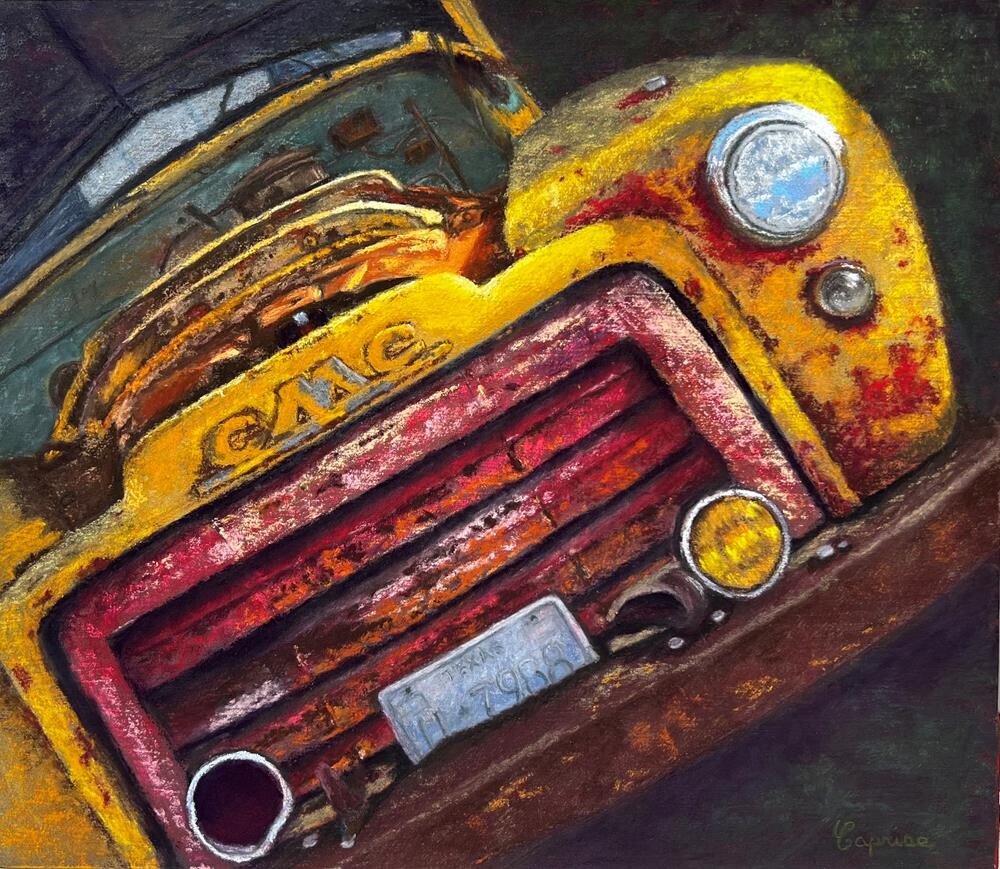 I took this photo in a town in TX, don’t remember the name. The town was inspiration for Radiator Springs in the movie Cars. I used UArt sanded paper, did a Micaceous iron oxide acrylic and metallic watercolor underpainting then painted with pastels. When seen in person, the truck has a metallic shimmer. I took this photo in a town in TX, don’t remember the name. The town was inspiration for Radiator Springs in the movie Cars. I used UArt sanded paper, did a Micaceous iron oxide acrylic and metallic watercolor underpainting then painted with pastels. When seen in person, the truck has a metallic shimmer. |