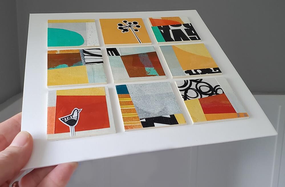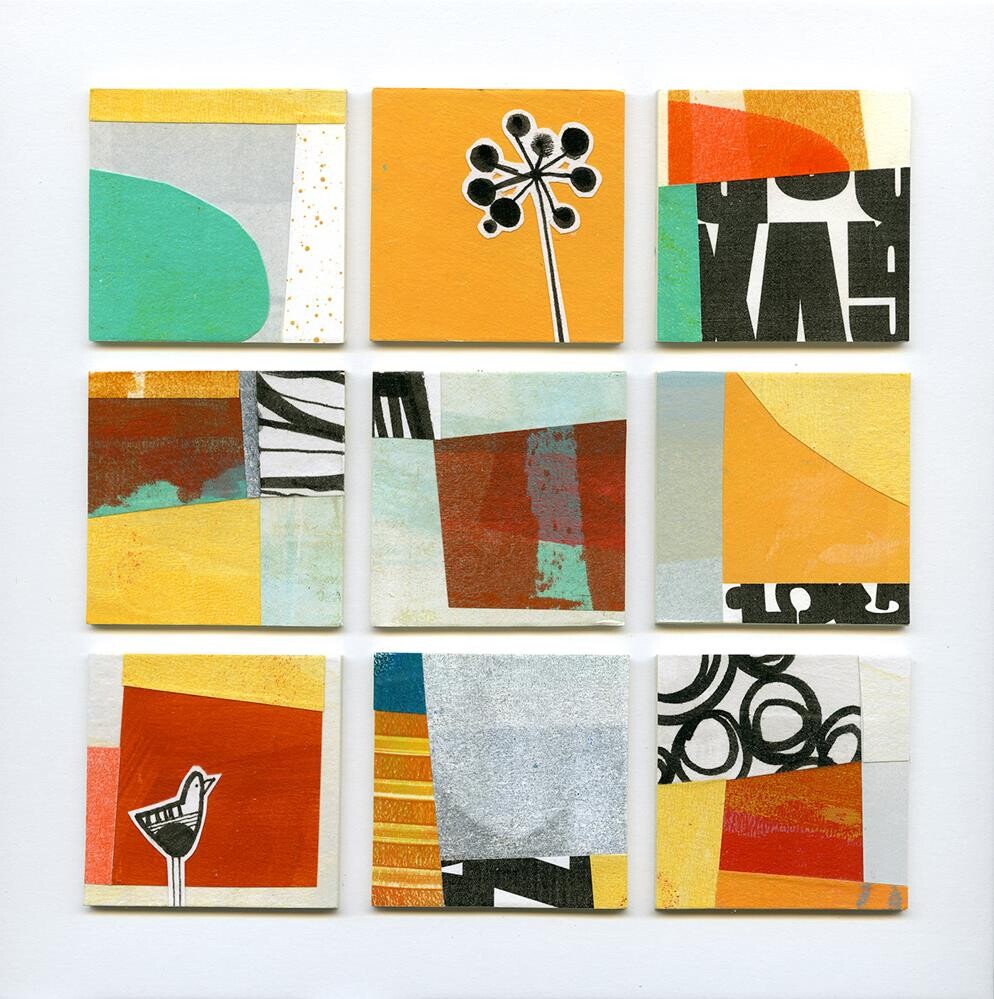 My husband kept telling me it would be cool to see groupings of my collages, but the how of it didn't click for me until recently. Each of these squares is collage on a 2x2in. piece of illustration board, and all 9 are mounted with archival PVA glue on a piece of white matte board. The whole thing can be placed into an 8x8in. frame, and is basically self-matted. I'm really happy with it! : ) My husband kept telling me it would be cool to see groupings of my collages, but the how of it didn't click for me until recently. Each of these squares is collage on a 2x2in. piece of illustration board, and all 9 are mounted with archival PVA glue on a piece of white matte board. The whole thing can be placed into an 8x8in. frame, and is basically self-matted. I'm really happy with it! : ) |
