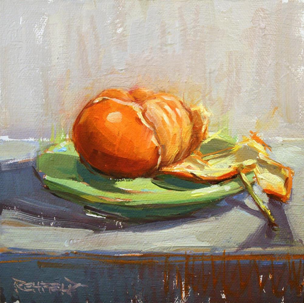 I'm playing with color contrasts within my still life painting. Oranges and greens are nice together. They are hormonious and create tension both at the same time.