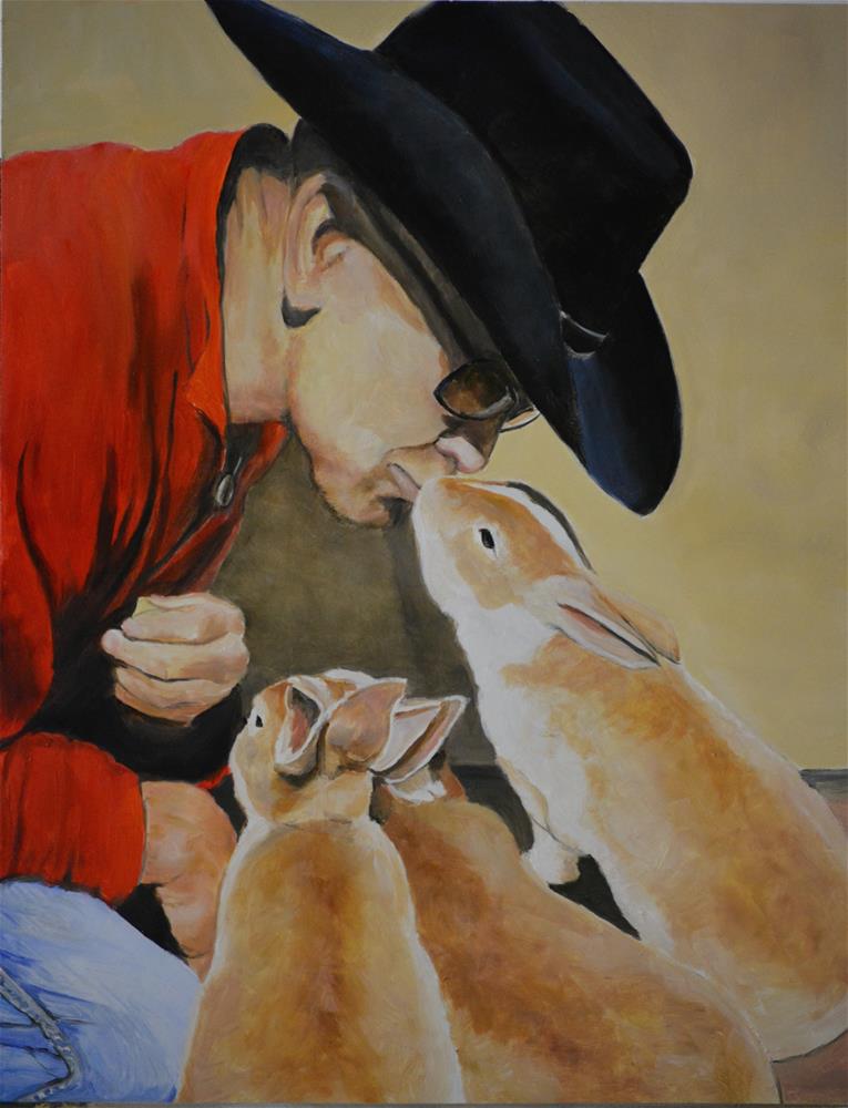 This photo was taken by my friend in Arizona and she gave me permission to paint it. The bunny was taking a treat from the guys mouth.