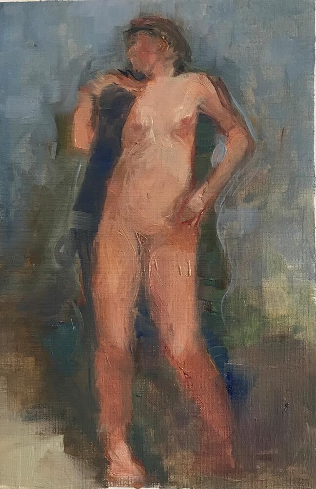 Today exercice , working over a former nude painting from imagination Oil on canvas paper