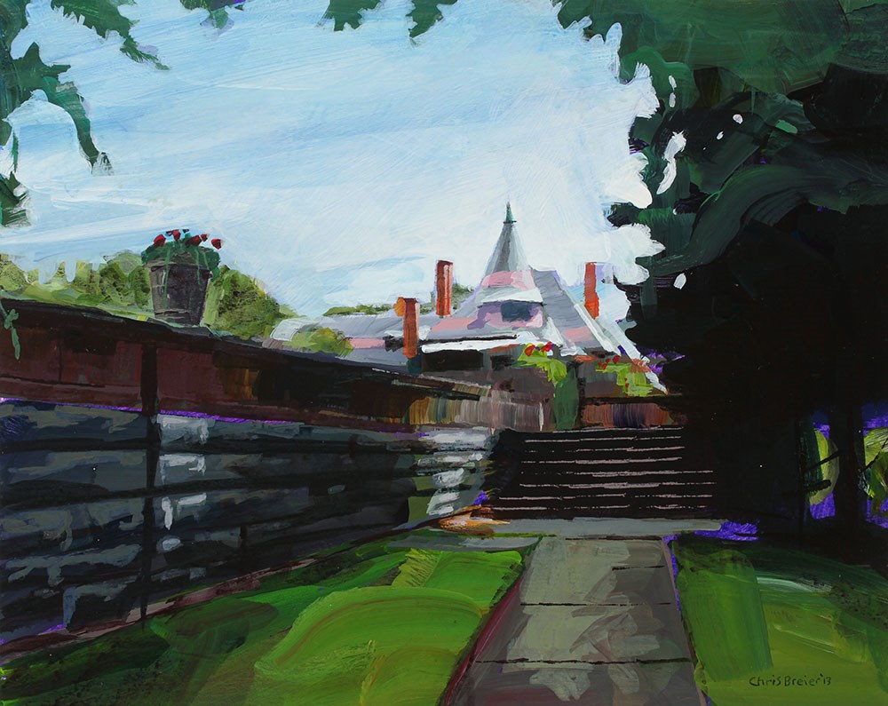 This was the first picture that I took when I arrived at Sonnenberg Gardens. Only a small portion of the Mansion is visible in the painting and I like how that creates intrigue-it makes me interested in climbing the stairs to see what's on the other side of the wall. The sidewalk and stone wall also direct your eye to the focal point of the painting.