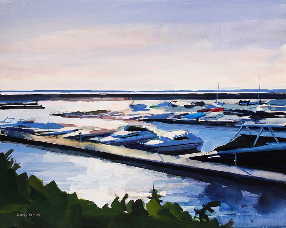 A painting of boats on Lake Erie, read more about this painting of the Buffalo Harbor on my blog.