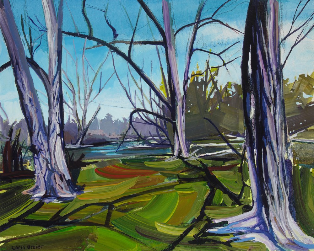 I photographed these three trees at Amherst State Park last Spring. These trees are along the edge of Ellicott Creek which runs through the park. I enjoyed painting the bark of the trees and I added more detail to the ones in the foreground.