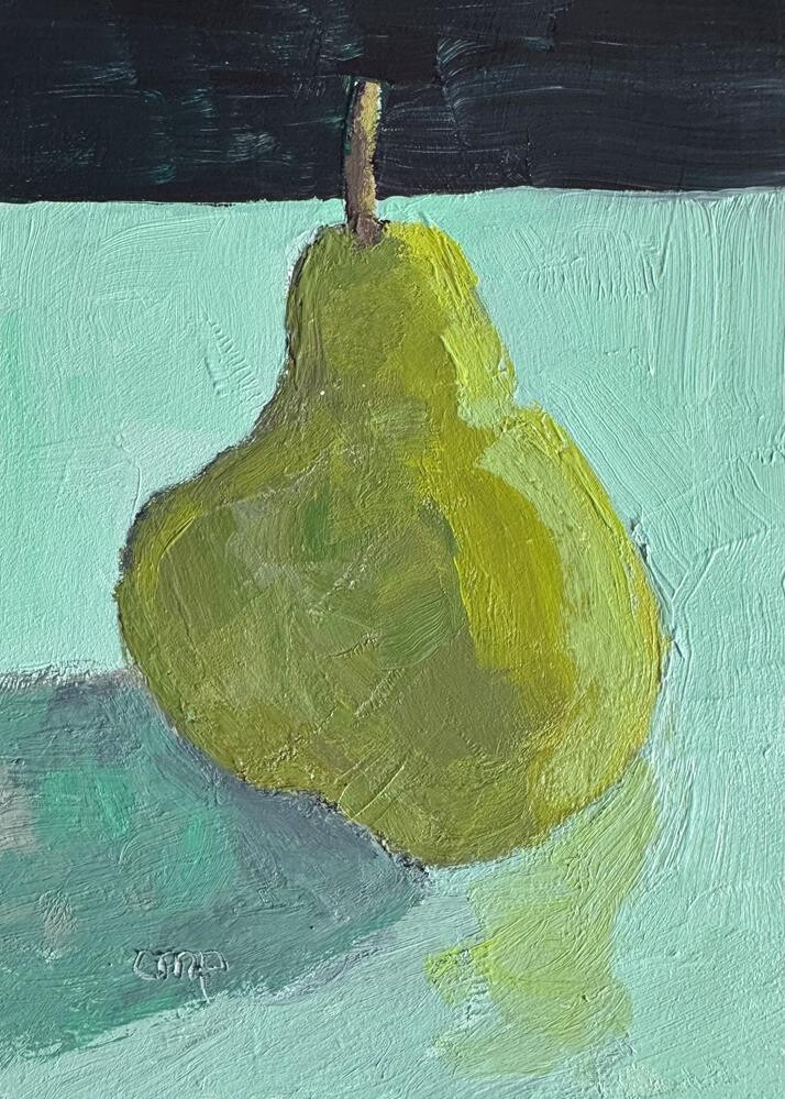 I did this for this month’s challenge to use outlines. I started with a palette knife with the dark color and made loose lines around the shape of the pear. In the process of painting it, most of the lines disappeared. I did this for this month’s challenge to use outlines. I started with a palette knife with the dark color and made loose lines around the shape of the pear. In the process of painting it, most of the lines disappeared. |