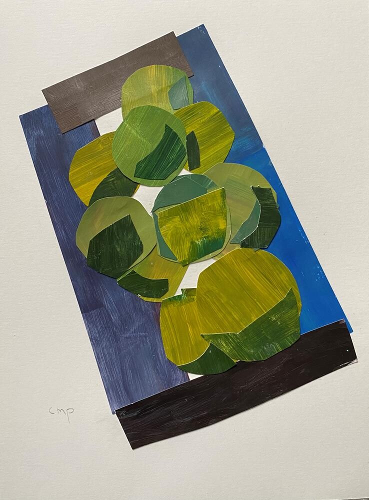 Media: Collage with cut acrylic paper on paper