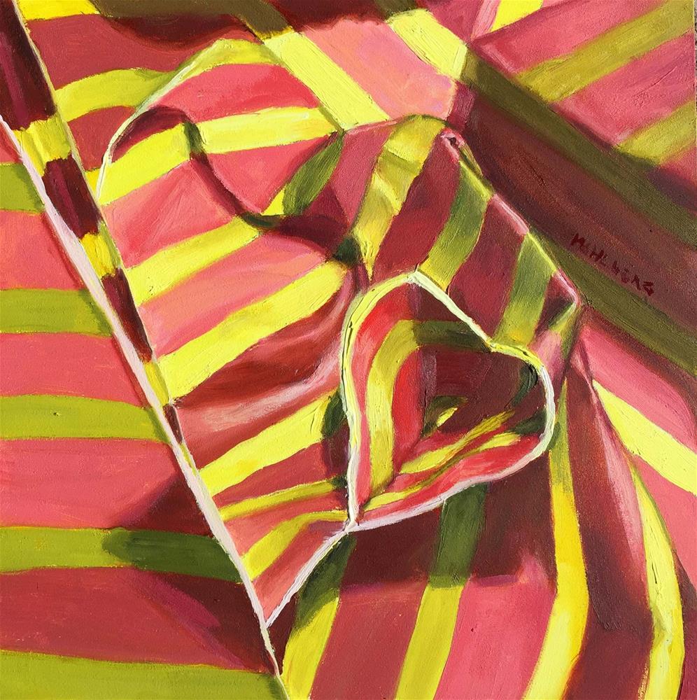 A continuation of my Paper Theme which I started years ago. I love stripes. I copied a striped box of mine on the copier, and the important part was to glue these copies back to back and therefore made a paper that was stiff enough to manipulate and not so thin as to crease easily. This "heart shape" came by accident and caught my eye. I have been working on using different colors, but the image is so time consuming, I may or may not try other colors before I go "large". We will see.