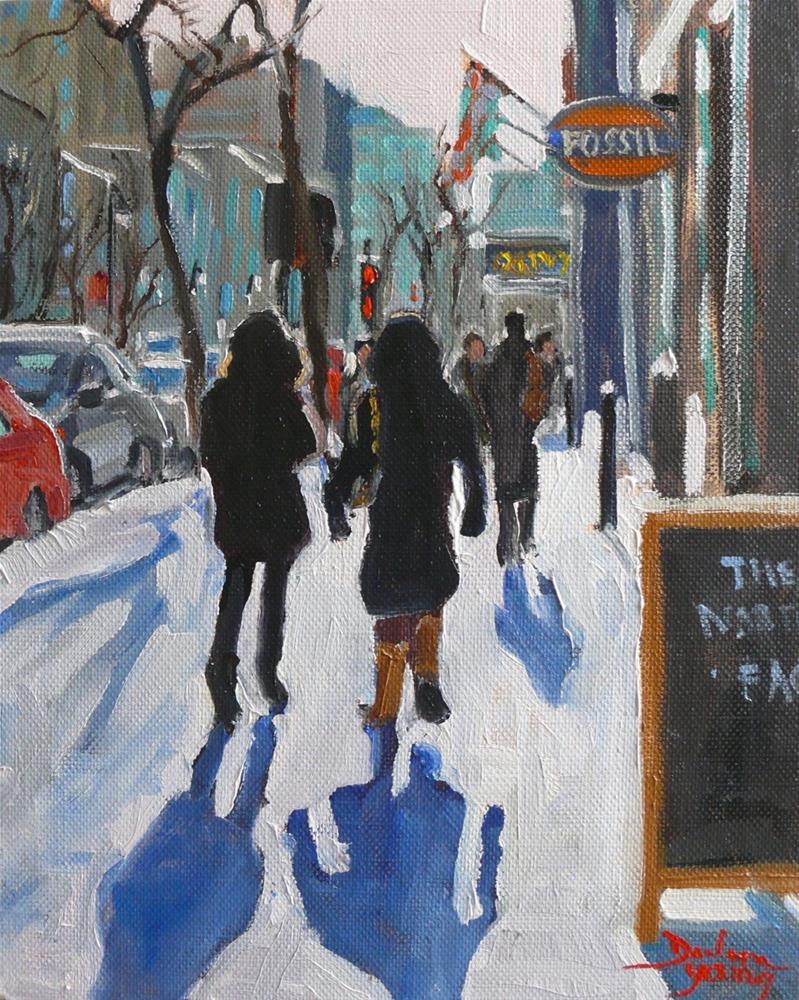 Original oil painting of Montreal Winter Scene. Ste-Catherine Street near Peel.