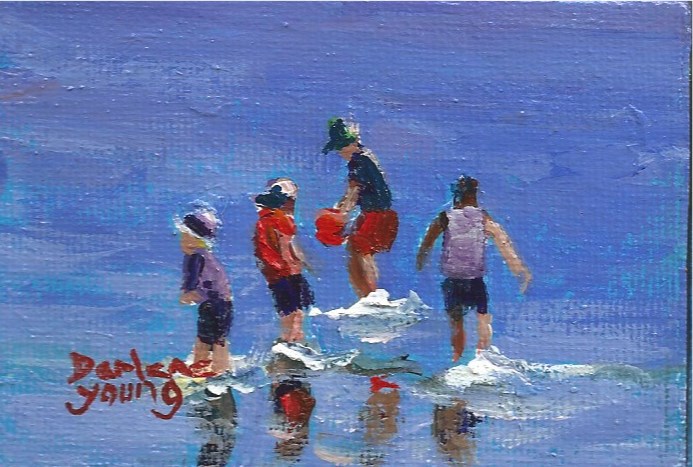 942 Beach Boys, miniature, 2.5x3.5, oil on board