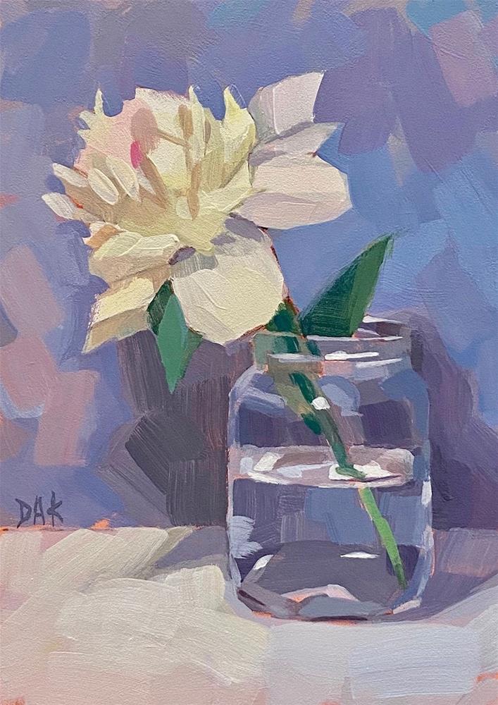 This is the last peony I've painted for the spring season 2020. I was going to name it The Last One but to put a positive spin on it the name changed to One That Lasts. This is my favorite peony for 2020. I had trouble finding a short glass vase, for some reason my short glass vase did a disappearing act. How does that happen? The stubborn part of me wouldn't give up until finally remembering my saved food jars under the sink, I found this short pickle relish jar which worked perfect after removing the label. More info than you probably wanted to know, I just thought it would be fun to let you inside my imperfect world.