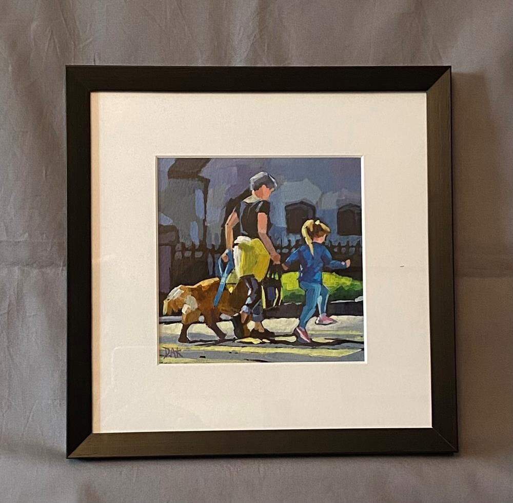 This painting is matted and framed with glass and ready to hang. See the second image.