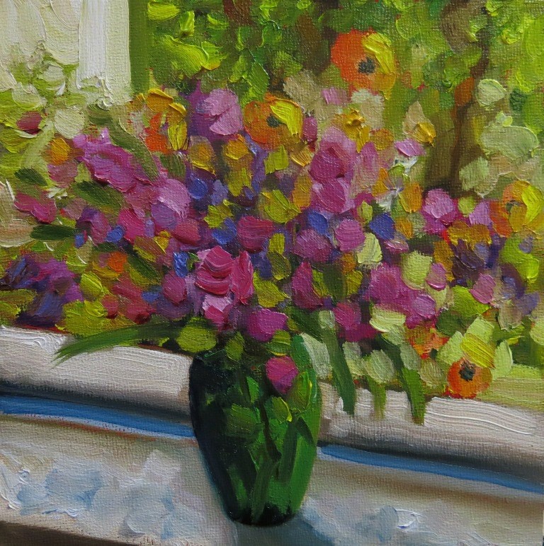 Colorful flowers in a sunny window |