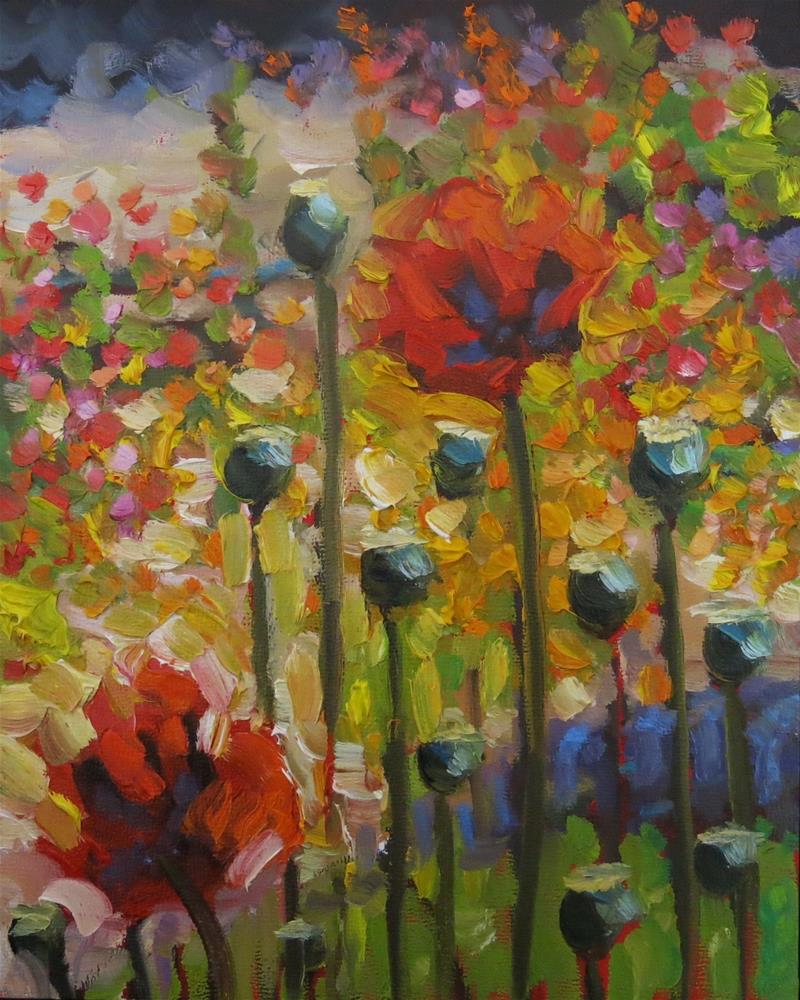two bright poppies in a beautiful wildflower garden