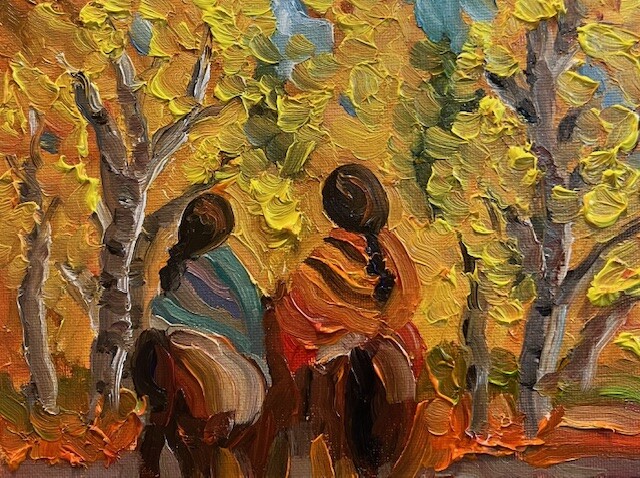 Two Canyon Women riding through the aspen trees on a brisk, autumn day Two Canyon Women riding through the aspen trees on a brisk, autumn day |