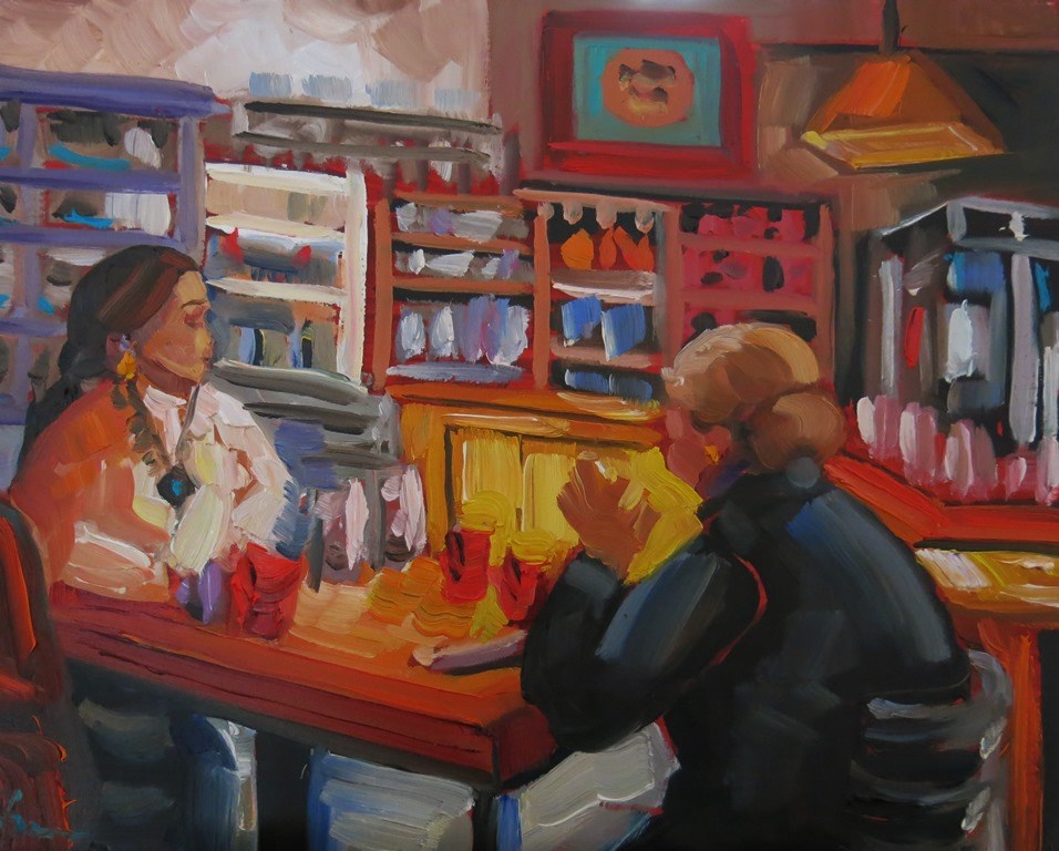 two friends having a quiet lunch date at the marketplace in Tesuque, New Mexico