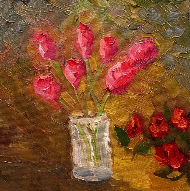 A wild and whimsical vase of tulips. I pushed the paint around and had so much fun! A wild and whimsical vase of tulips. I pushed the paint around and had so much fun! |