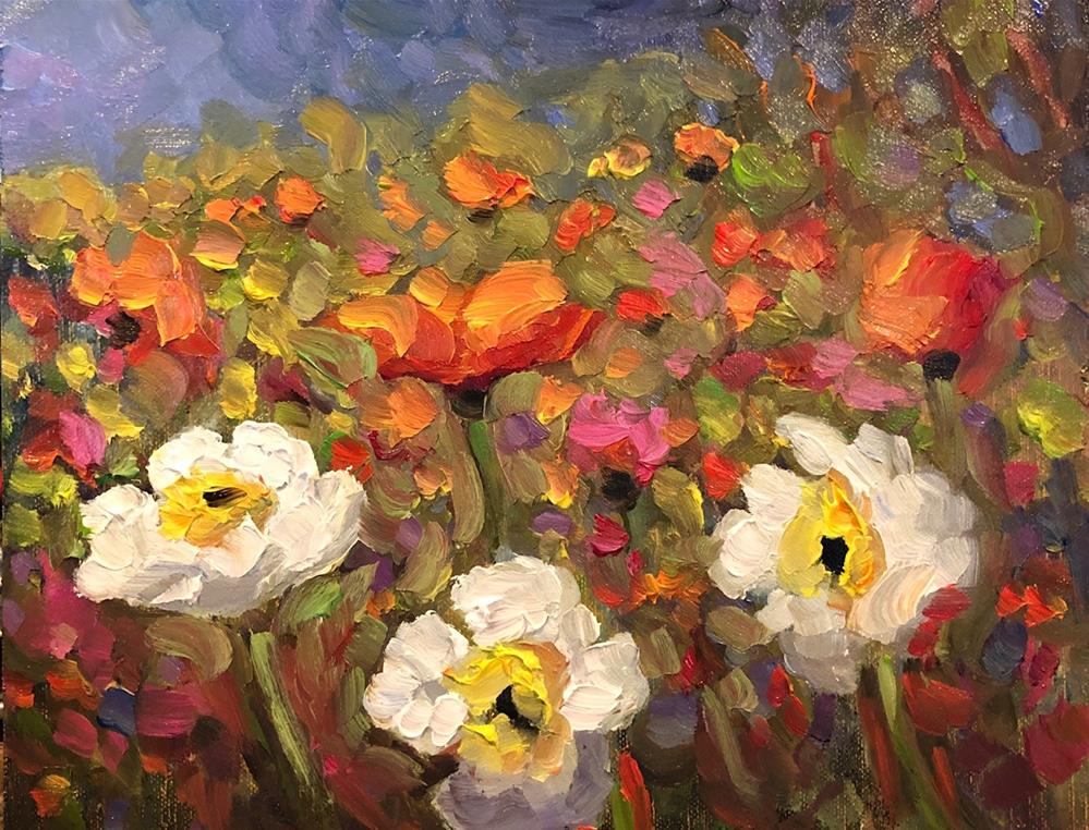 Three white poppies in an almost nocturnal poppy meadowscape Three white poppies in an almost nocturnal poppy meadowscape |
