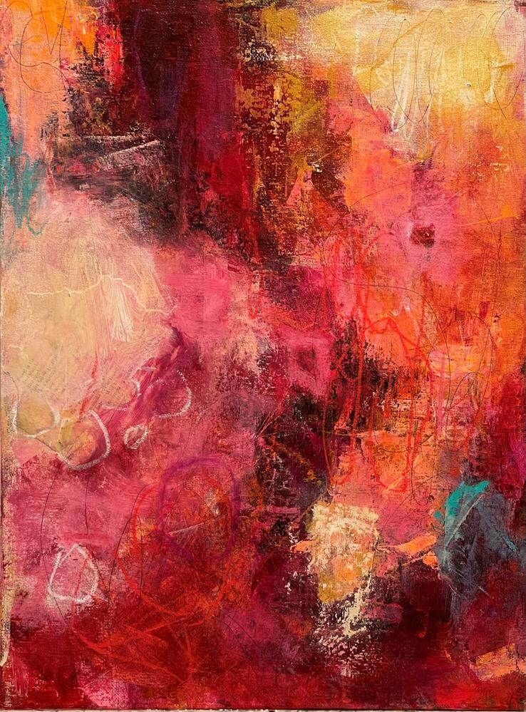 I'm really happy with the depth and colors of this painting. I was less inhibited with my mark making, which I wish would happen more often.