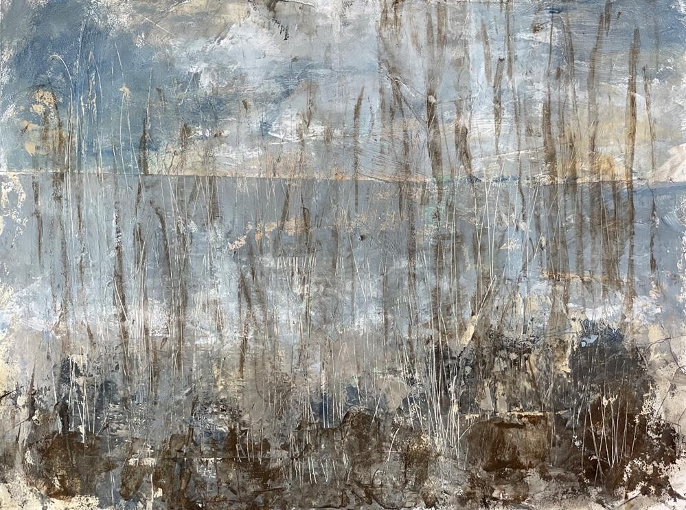 a beach inspired painting of tranquility I feel when I am near sand, water, rocks and seashells.