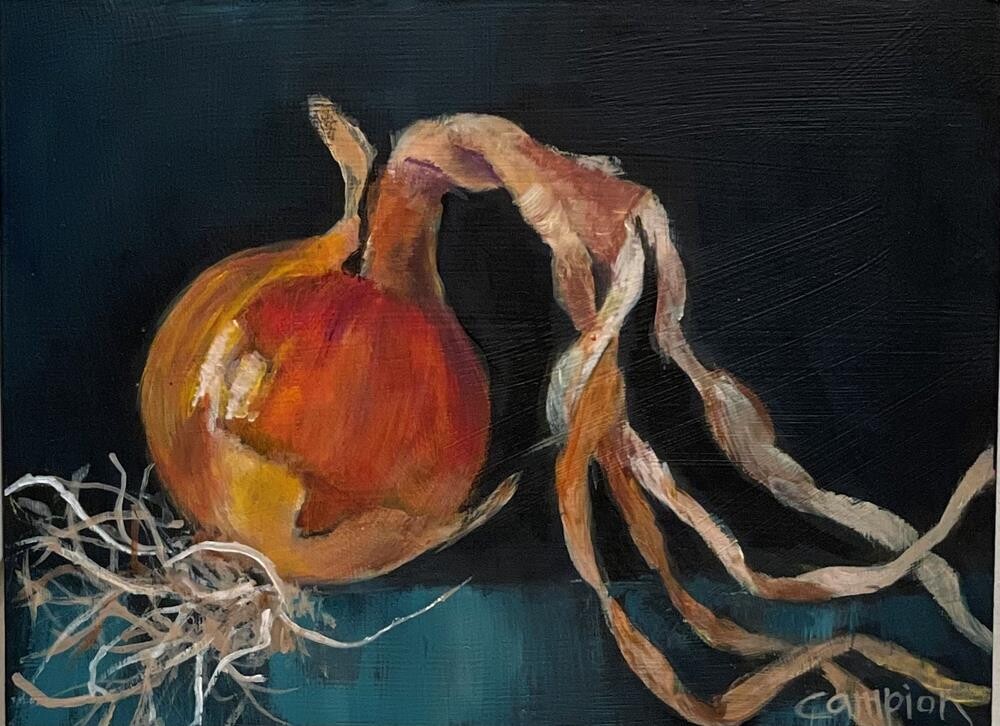I had a beautiful crop of onions in my rooftop garden, providing me with lots of painting material.