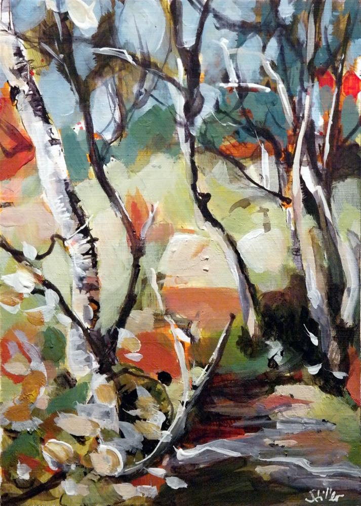 The birch trees growing out of the ground (what else?) don't need much to survive. A little bit of titanium white and fountain pen ink black is enough.