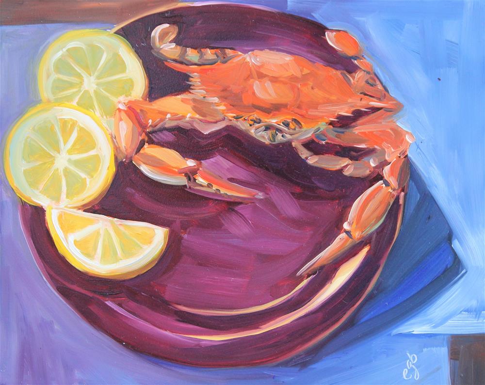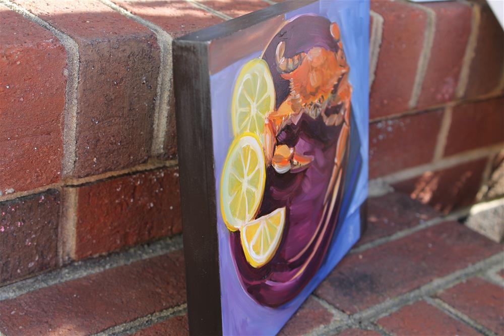Some of my fondest memories growing up in Portsmouth, VA are from those summer evenings sitting together eating crabs. Anyone who has done this regularly knows this is not for those whose stomachs are empty but rather for those who love an excuse to sit and socialize with family and friends. I painted this still life from a leftover crab from the night before. I love the complementary pairs of colors in this painting as well. Some of my fondest memories growing up in Portsmouth, VA are from those summer evenings sitting together eating crabs. Anyone who has done this regularly knows this is not for those whose stomachs are empty but rather for those who love an excuse to sit and socialize with family and friends. I painted this still life from a leftover crab from the night before. I love the complementary pairs of colors in this painting as well. |