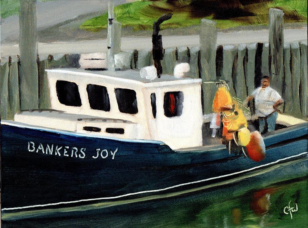I like the ambiguity of this. Is this the banker in his boat on holiday? Is the boat owned mostly by the bank and this is a comment by the captain? Is there a totally different reason for the boat's name that we are not aware of?