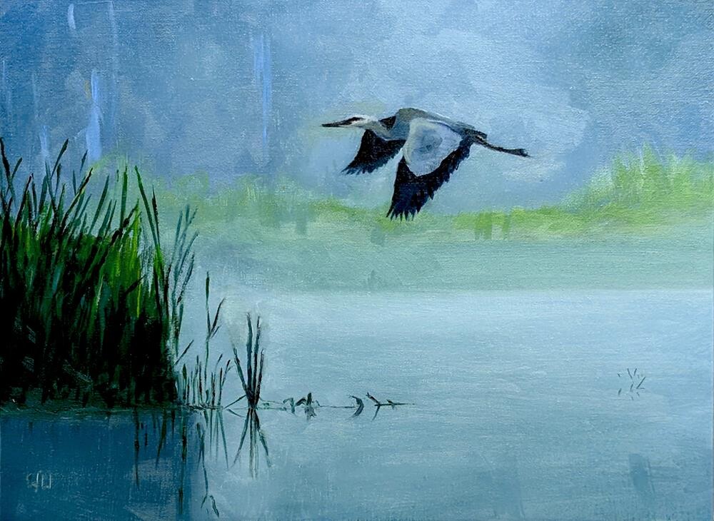 In early morning this heron silently moves from place to place looking for fish and frogs.