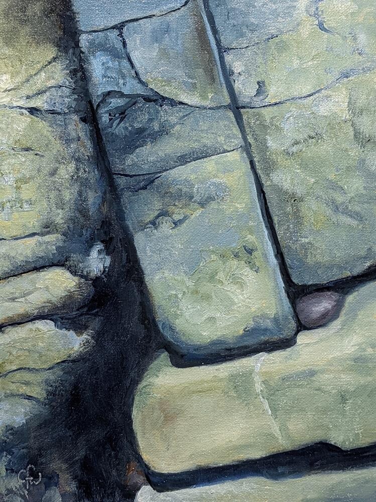 These rocks appear to be stacked broken and worn down by many years of wind and sea.