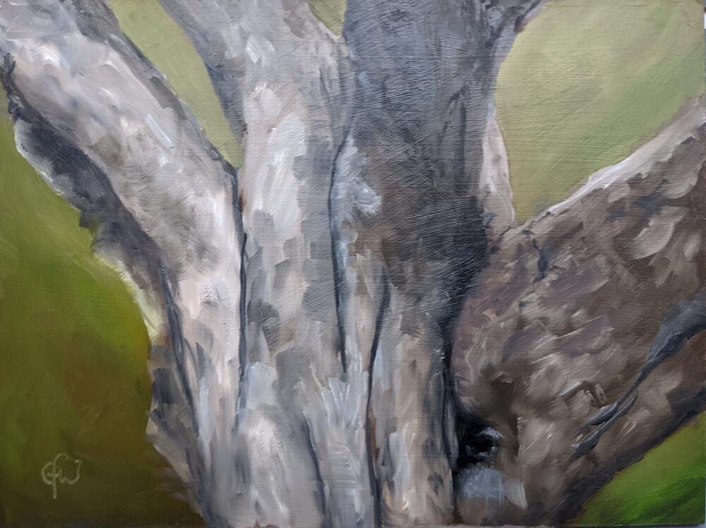 There is an old apple tree next door that does not produce many good apples anymore but the trunk is interesting.