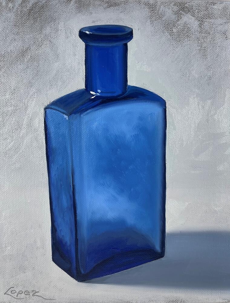 "Blues In A Bottle" I've had this bottle, along with a few other colored glass items for a while and I finally painted it! It's actually my homework for a Color Wheel Workshop I'm taking where we're mixing "Color Strings." Last week was the blue color strings and I settled on this little guy for my homework. I love the "cloudy" look of vintage glass. "Blues In A Bottle" I've had this bottle, along with a few other colored glass items for a while and I finally painted it! It's actually my homework for a Color Wheel Workshop I'm taking where we're mixing "Color Strings." Last week was the blue color strings and I settled on this little guy for my homework. I love the "cloudy" look of vintage glass. |