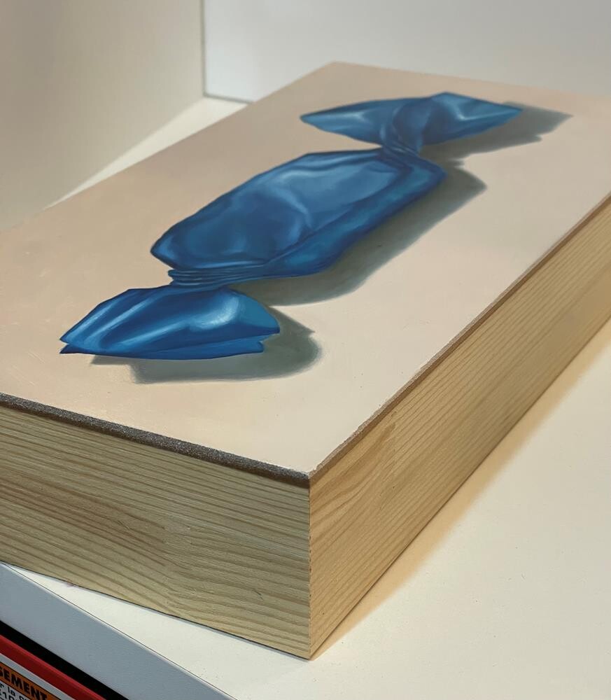 This little piece of candy almost did me in! That blue foil just started taking on a life of its own. I decided to go with what was happening on the painting surface and just using the actual piece of candy as a basic reference for lights and darks. I like to think I won the struggle! Note: The painting is on 6x12 inch cradled board. The board is 2 inches in height. Please see the second photo. This little piece of candy almost did me in! That blue foil just started taking on a life of its own. I decided to go with what was happening on the painting surface and just using the actual piece of candy as a basic reference for lights and darks. I like to think I won the struggle! Note: The painting is on 6x12 inch cradled board. The board is 2 inches in height. Please see the second photo. |